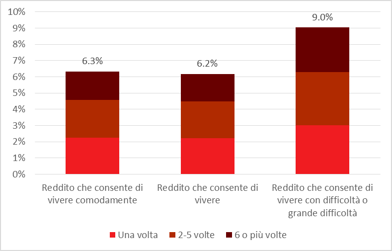No, per quanto riguarda la violenza perpetrata dal partner. Sì, nel caso di molestie sessuali da parte di altri maschi. Ma il disagio economico della famiglia fa differenza. A parità di condizioni economiche della famiglia, la probabilità di aver subito molestie sessuali nel corso dei dodici mesi che hanno preceduto l’intervista è maggiore per una donna che ha un’occupazione rispetto a una casalinga, una pensionata o una disoccupata di lungo corso. Non è invece statisticamente diversa nel caso di violenza fisica o sessuale perpetrata dal partner. Se però si rimuove la clausola di parità di condizione economica del nucleo di appartenenza, emerge la possibilità che avere un’occupazione protegga le donne degli strati economicamente meno abbienti. Uno dei risultati più solidi che lo studio registra è che vivere in un nucleo familiare economicamente disagiato accresce notevolmente la probabilità di subire abusi di ogni tipo - violenza fisica sessuale e psicologica dal proprio partner o molestie sessuali da non partner. Perciò lavorare rappresenta un fattore di protezione per lei nella misura in cui il suo reddito permette alla famiglia di mantenersi al di sopra della soglia di povertà.