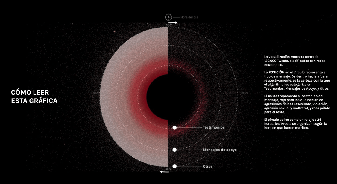 L'obiettivo dell'indagine era quello di studiare i tweet statisticamente e visualizzarli graficamente per trasmettere l'impressionante grandezza del fenomeno, ma la quantità di dati raggiunge un altro obiettivo meno statistico: diventa un luogo senza paura o imbarazzo dove sono raccontare in prima persona le testimonianze brutali delle violenze vissute da donne che a volte, solo attraverso un tweet, sono riuscite a parlarne. La rete diventa quindi un luogo dove poter dire quello che spesso si tace per vergogna, perché anche se accade ciò che non viene nominato non esiste. È stato così che l'hashtag #Cuéntalo si è trasformato in uno spazio virtuale contro la violenza machista, una memoria collettiva per dimostrare la veridicità delle denunce e la dimensione di un conflitto. In un paese come la Spagna dove molti casi di stupro non vengono denunciati diventa importante portare alla luce fatti che accadono ogni giorno e che non vengono conteggiati in nessun registro, sia per paura, o peggio, perché la società non ci crede.
